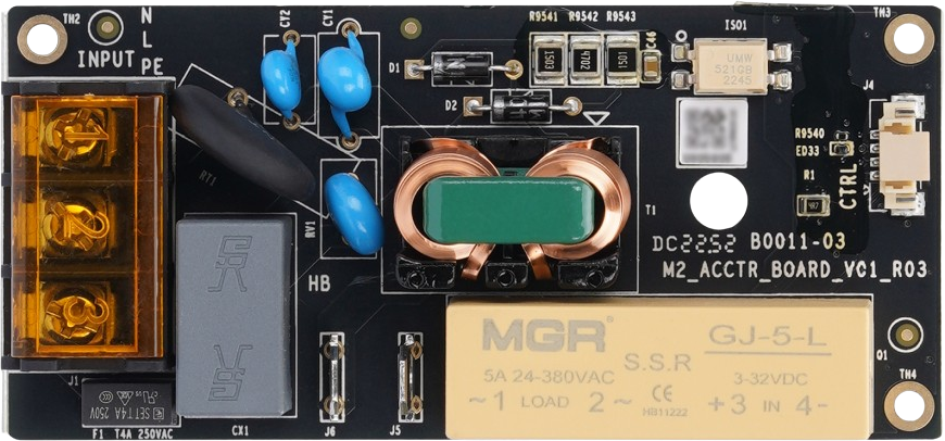 Das Bambu Lab AC Board ist die zentrale Schaltplatine für die Stromversorgung des Heizbetts eines Bambu Lab Druckers. Es leitet den Wechselstrom (AC) sicher und effizient zum Heatbed weiter und sorgt damit für eine stabile und gleichmäßige Wärmeverteilung während des Druckvorgangs.