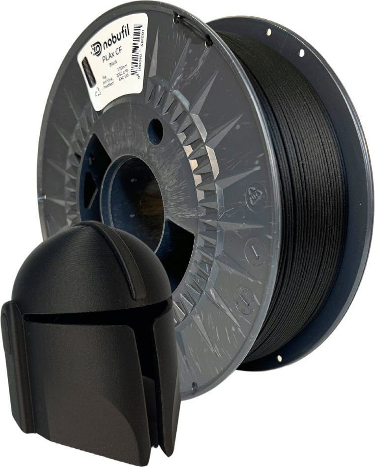 Das PLAx CF von Nobufil ist ein carbonverstärktes PLA-Filament aus recycelten Kunststoffen, die als Produktionsabfälle in der industriellen Verarbeitung anfallen. Dank einer speziellen Modifikation zur Erhöhung der Schlagzähigkeit und der Zugabe von hochfesten Kohlenstofffasern bietet dieses Verbundmaterial eine erstklassige Kombination aus Stabilität, Leichtigkeit und beeindruckender mechanischer Belastbarkeit, die insbesondere für robuste funktionale und technische Anwendungen infrage kommen.