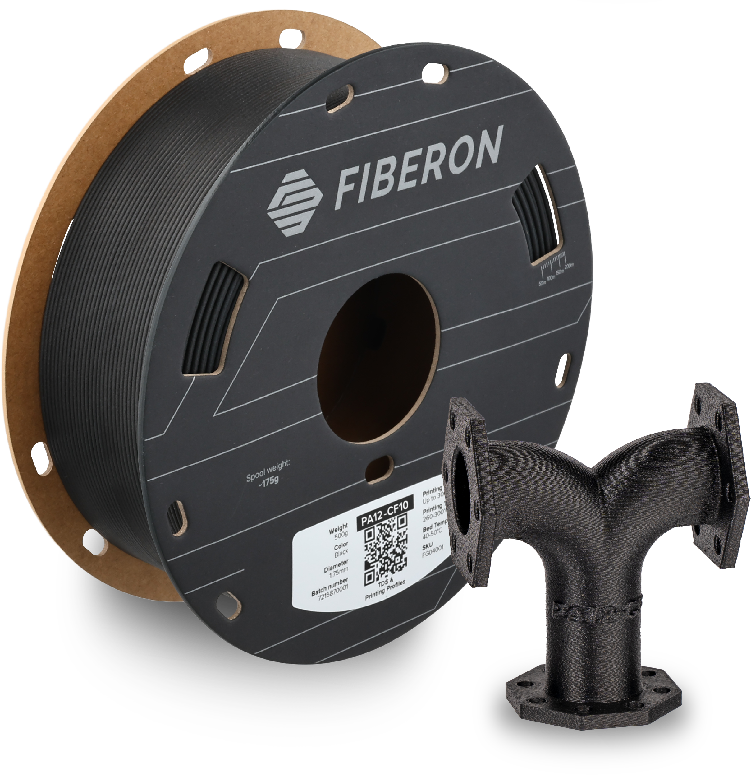 Das Fiberon™ PA12-CF10 von Polymaker ist ein High Performance PA12-Filament, das mit 10 % Kohlefasern verstärkt ist und mit einer deutlich reduzierten Feuchtigkeitsempfindlichkeit punktet, was sein Handling, Lagern und Drucken spürbar erleichtert.