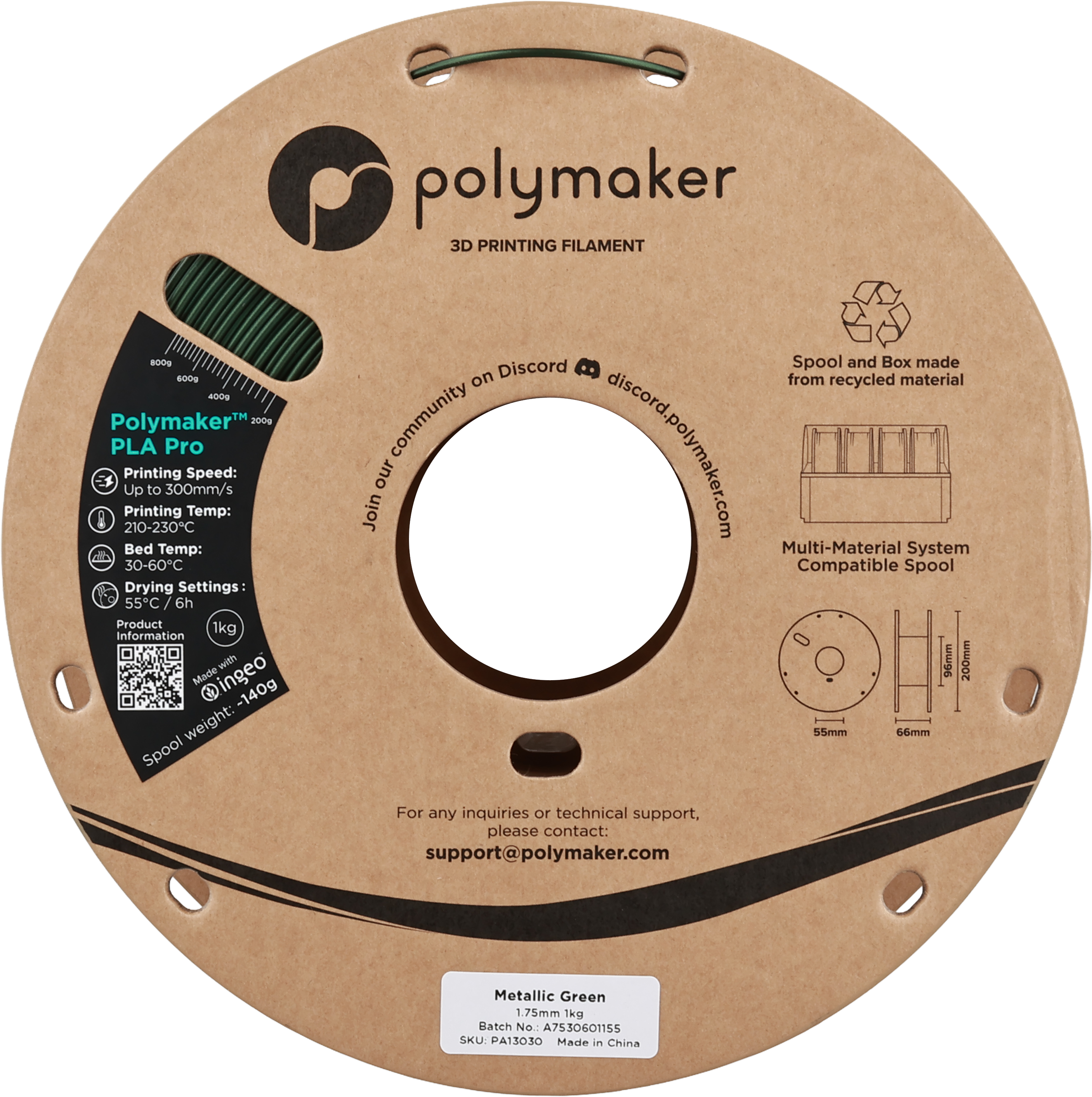 Polymaker PLA Pro Metallic Green, 1,75 mm / 1000 g